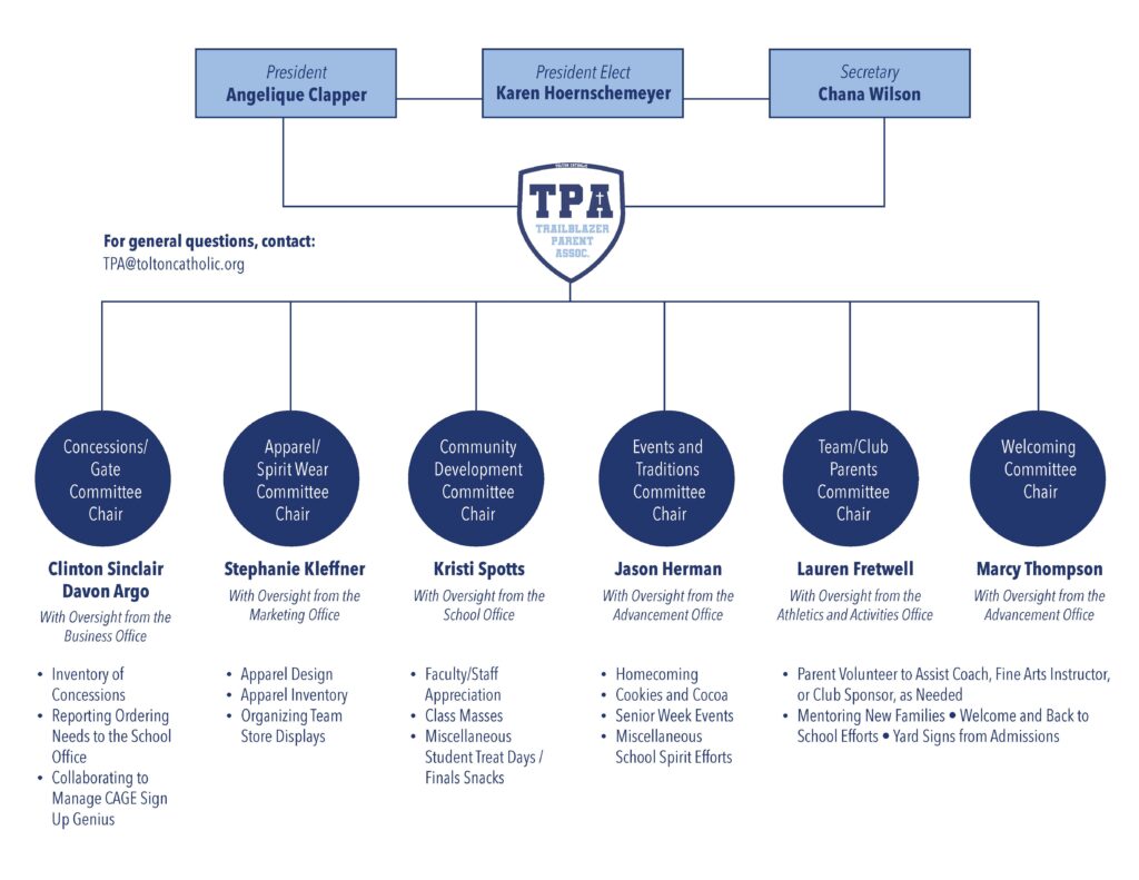 TPA MISSION: The Trailblazer Parent Association supports Tolton Catholic High School through parent involvement in all activities, athletics and academic support.
